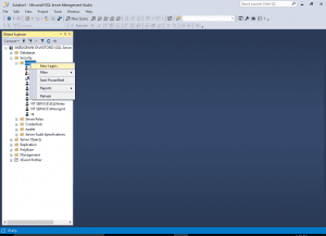 - Right click the ‘Logins’ node and select the ‘New Login’ menu item: