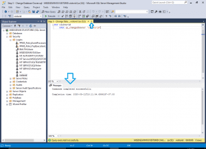 - Open the ‘Step 3 – Change Database Owner.sql’ file in Microsoft SQL Server Management Studio.