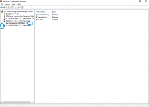 - Press the right-arrow next to the text ‘SQL Server Configuration Manager’ item in the left-pane under ‘Console Root’ to expand the node: